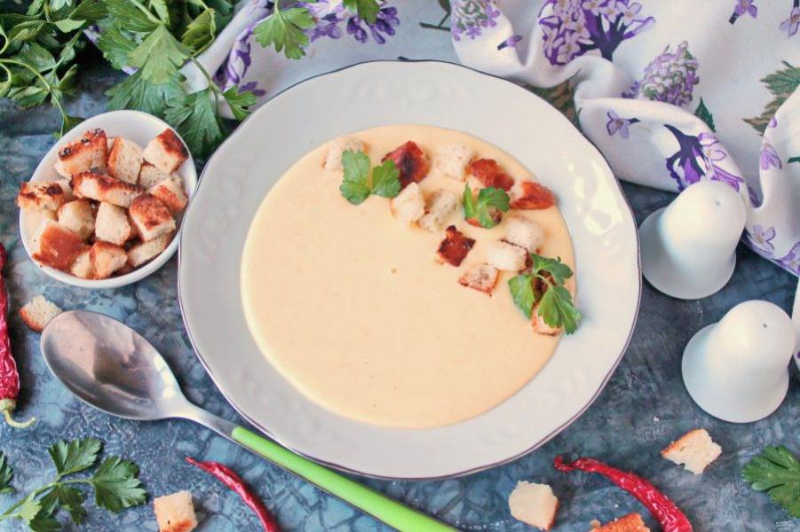 Если любите нежные, бархатные супы-пюре из сыра, обязательно попробуйте такой вариант, где первой скрипкой будет брынза. Готовится просто, быстро, отлично выручит, когда нужно накормить семью.