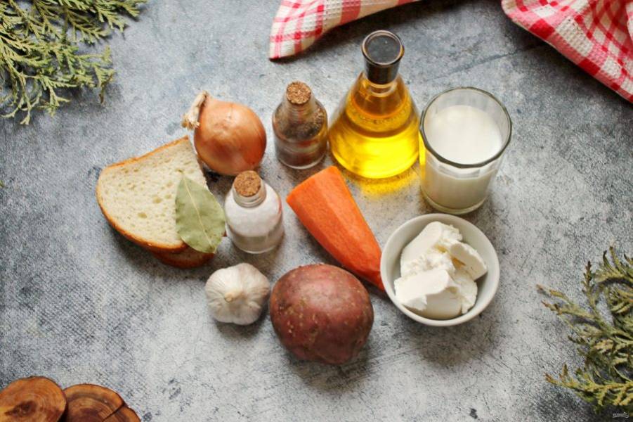 Подготовьте все необходимые ингредиенты для приготовления супа из брынзы.