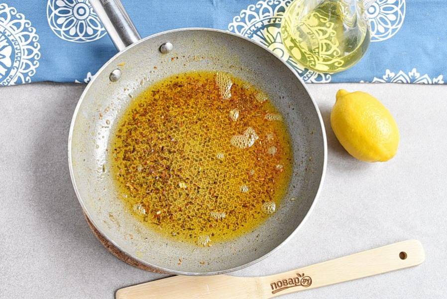 За это время распустите оставшееся топленое масло в сковороде и бросьте в него красный перец и сушеную мяту. Размешайте и снимите с огня.