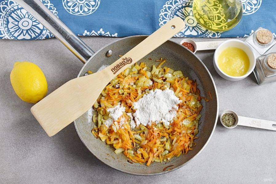 Добавьте ложку муки и прогрейте еще минуту.