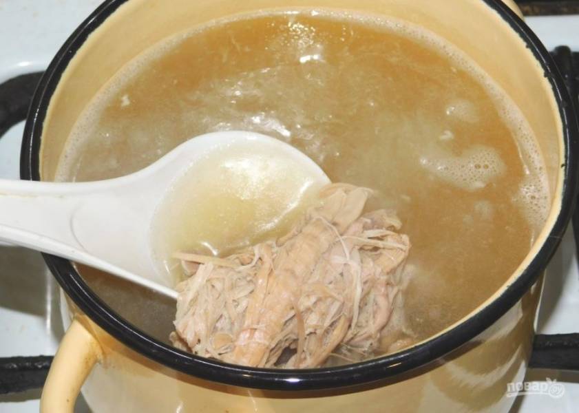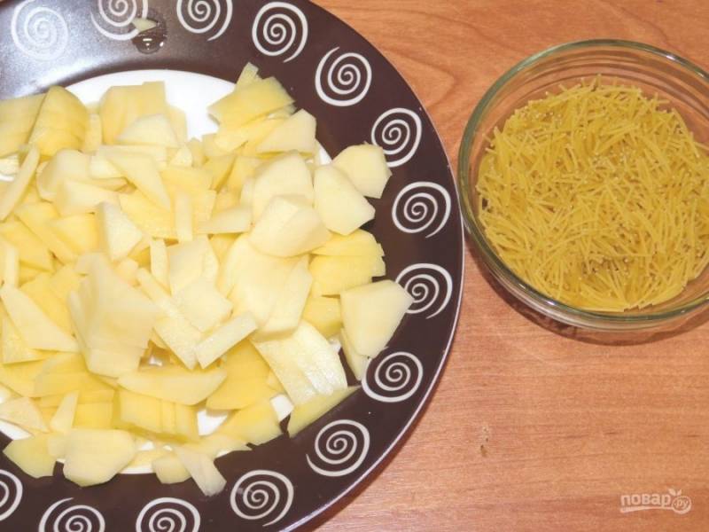 Добавьте в суп нарезанный картофель и горсть вермишели.