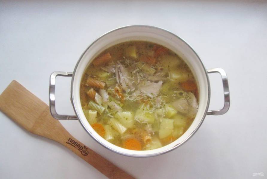 Когда все ингредиенты будут готовы, выложите консервы в суп. Посолите его по вкусу.