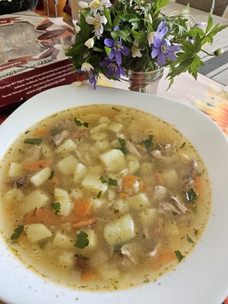 Дайте теперь вашему супу немного настояться, и разливайте по тарелкам. Я надеюсь, что вам этот простой рецепт супа из свинины с картофелем придется по вкусу так же, как и мне.