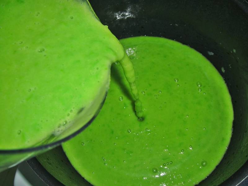 Рецепт приготовления легкого супа-пюре из лука, зеленого горошка, бульона и эстрагона.