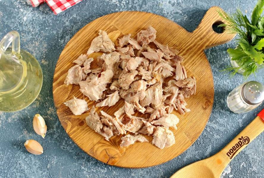 Когда мясо будет готово, достаньте его и отделите от костей.