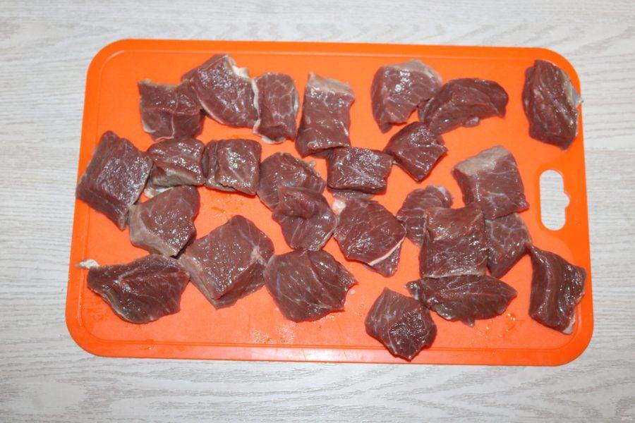 Мясо помойте, нарежьте крупными кусочками.