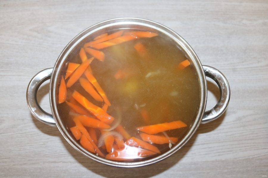 Добавьте морковь, варите 15 минут.