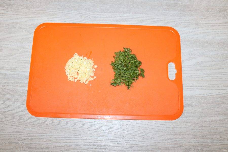 Мелко нарежьте укроп, чеснок и острый перец.