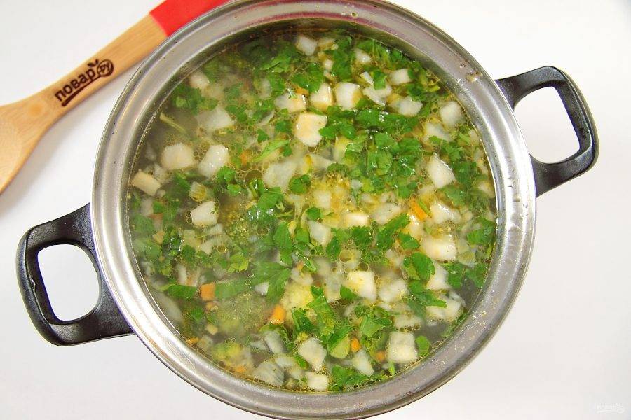 6. В конце добавьте свежую зелень и дайте супу настояться.