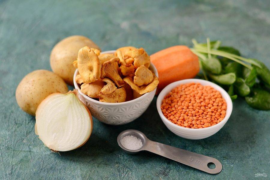 Суп с чечевицей и лисичками готов, приятного аппетита!