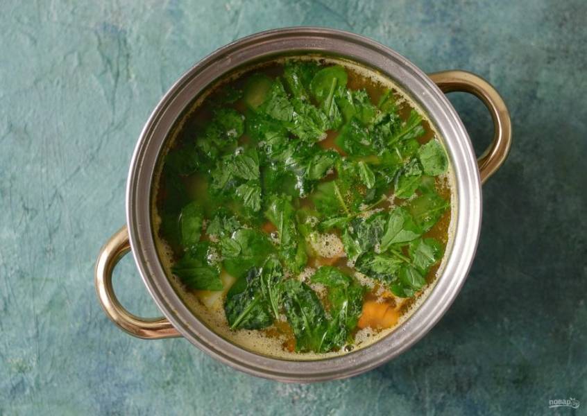 Добавьте в кастрюлю жареный лук и морковь, чечевицу и лисички. Посолите и поперчите по вкусу. Варите суп примерно 20-25 минут, пока не будет готова чечевица.