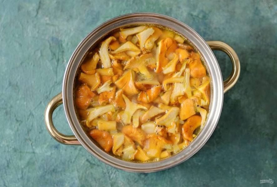 Лисички помойте, нарежьте ломтиками среднего размера. Грибы маленького размера можно просто разрезать пополам.