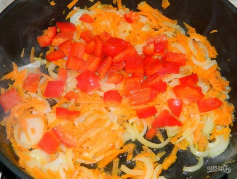 Отдельно обжарьте лук, морковь и болгарский перец. Добавьте зажарку в суп.