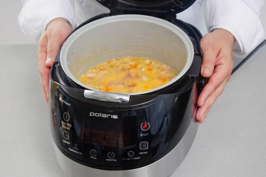 Добавить курицу, варить 30 мин при том же режиме.