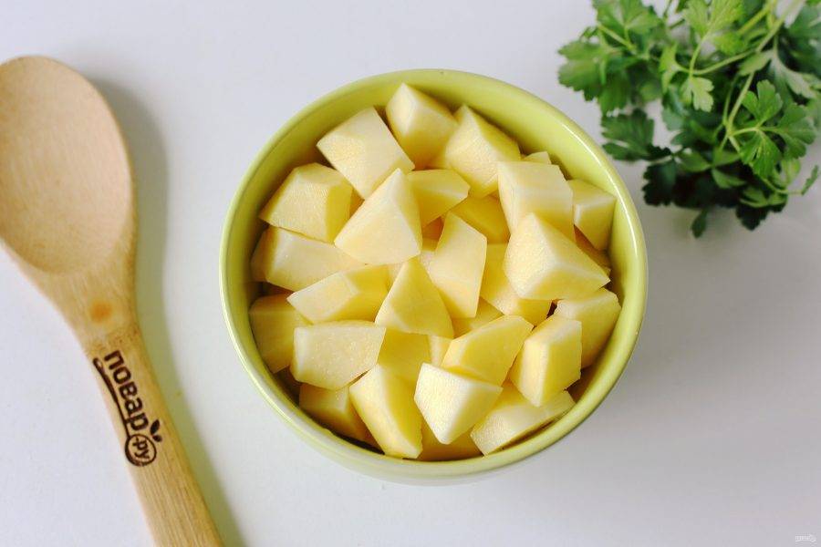 Картофель нарежьте кубиками.