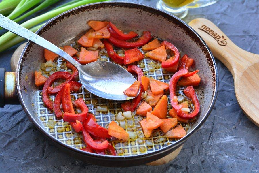 Пассеруйте овощи на растительном масле 2-3 минуты, помешивая.