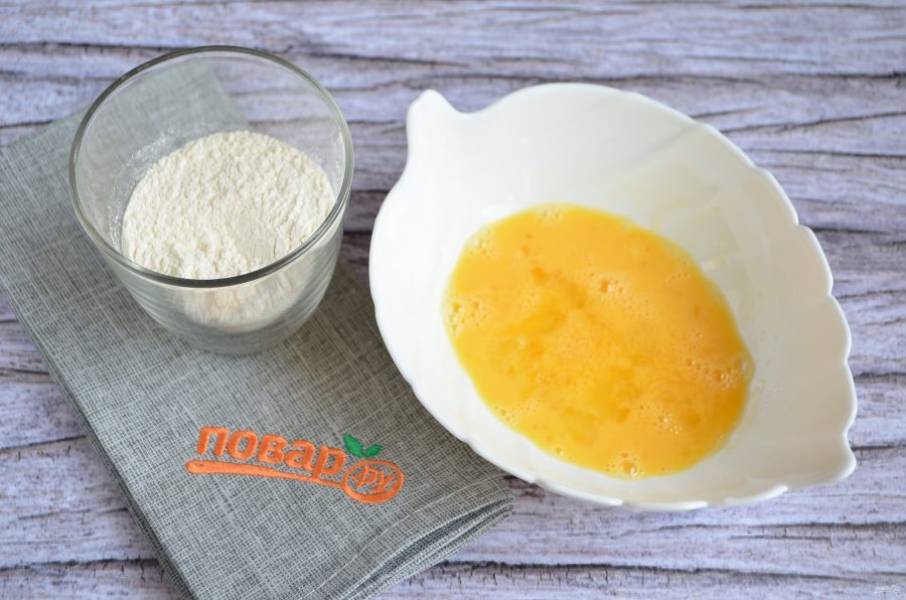 5. Для сырных рулетиков в миске взболтайте вилкой яйцо со щепоткой соли.