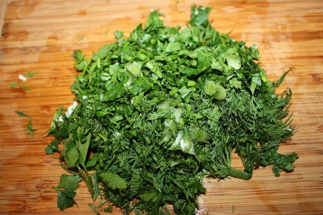 5. Зелень моем, и мелко рубим ножом. Будем посыпать суп при подаче.