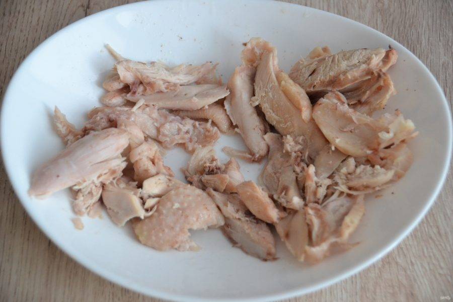 Мясо нарежьте мелкими кусочками и верните его в суп.