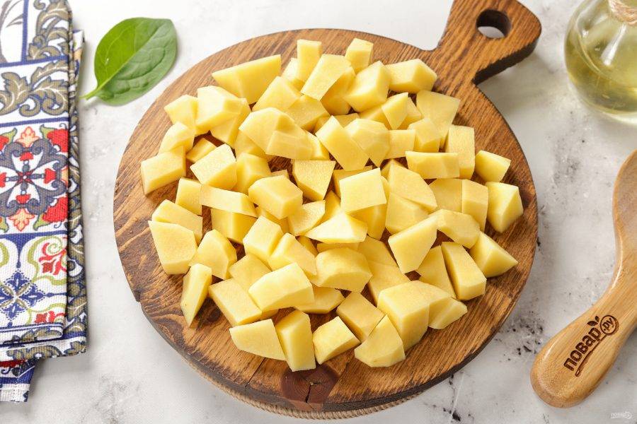 Как только бульон закипит, опустите в него картофель и готовьте 15 минут.