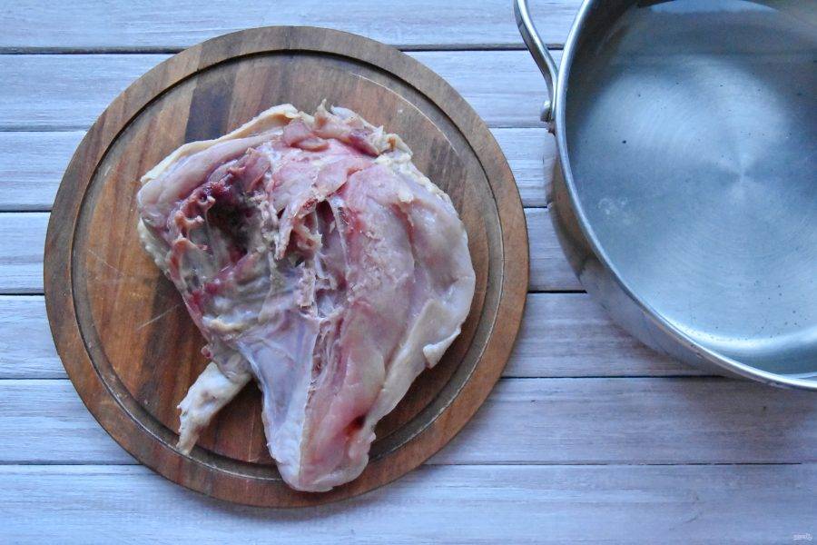 Для бульона лучше взять часть курицы вместе с костями. Промойте тушку, переложите в кастрюлю, залейте холодной водой. Варите курицу до полной готовности мяса. В период варки снимайте с бульона образующуюся пену. При желании можете слить первую порцию бульона.