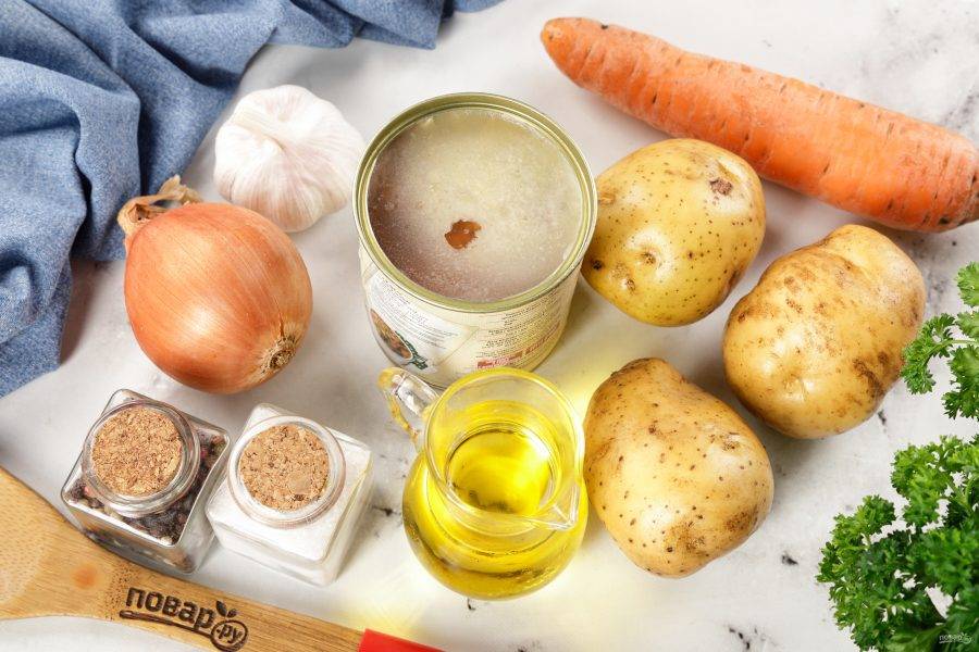 Подготовьте все ингредиенты по списку. Тушёнку можно взять любую, в моём случае была тушёнка из оленины.