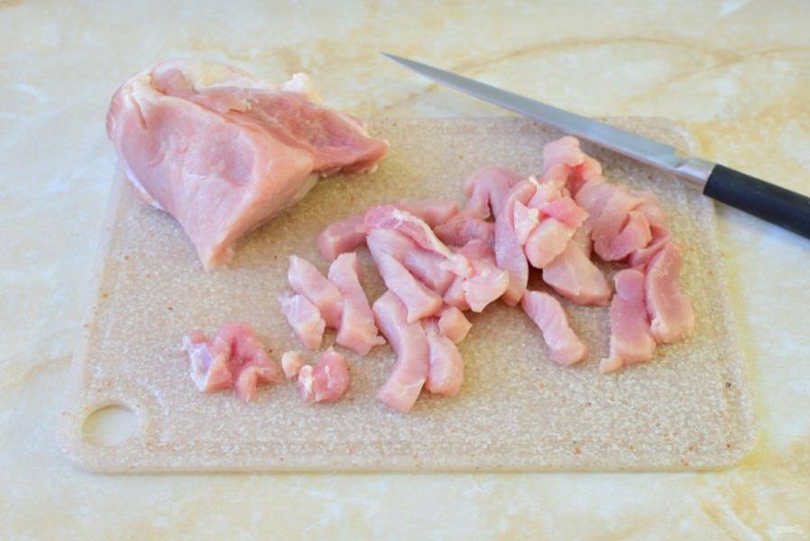 Мясо нарежьте на небольшие кусочки.
