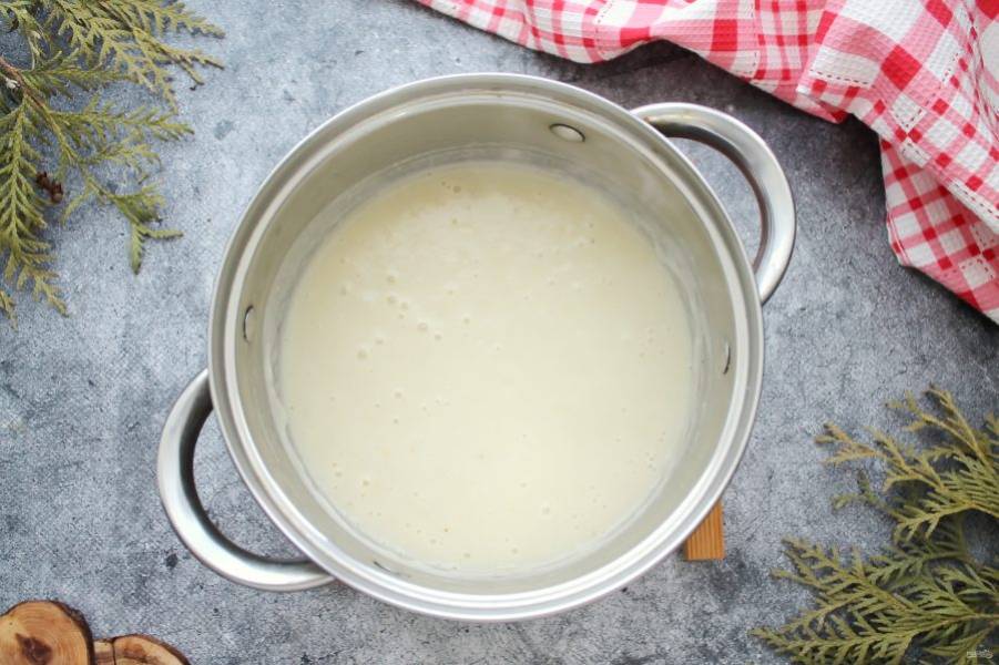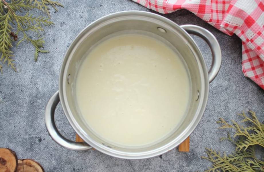 Все доведите до кипения, убавьте огонь и варите в течение 30 минут. Готовый суп пробейте блендером до однородности.