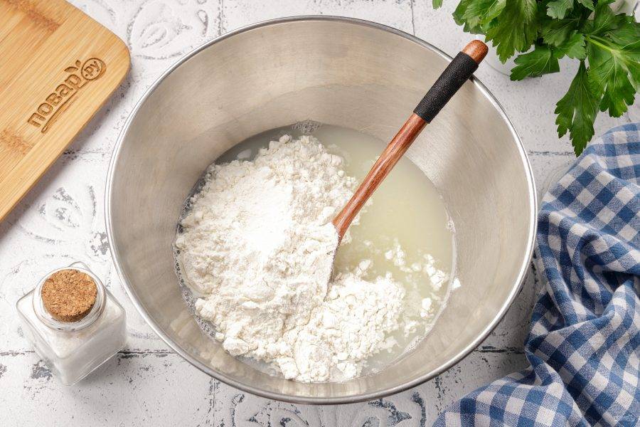 В глубокой миске взбейте яйцо с солью и добавьте воду.