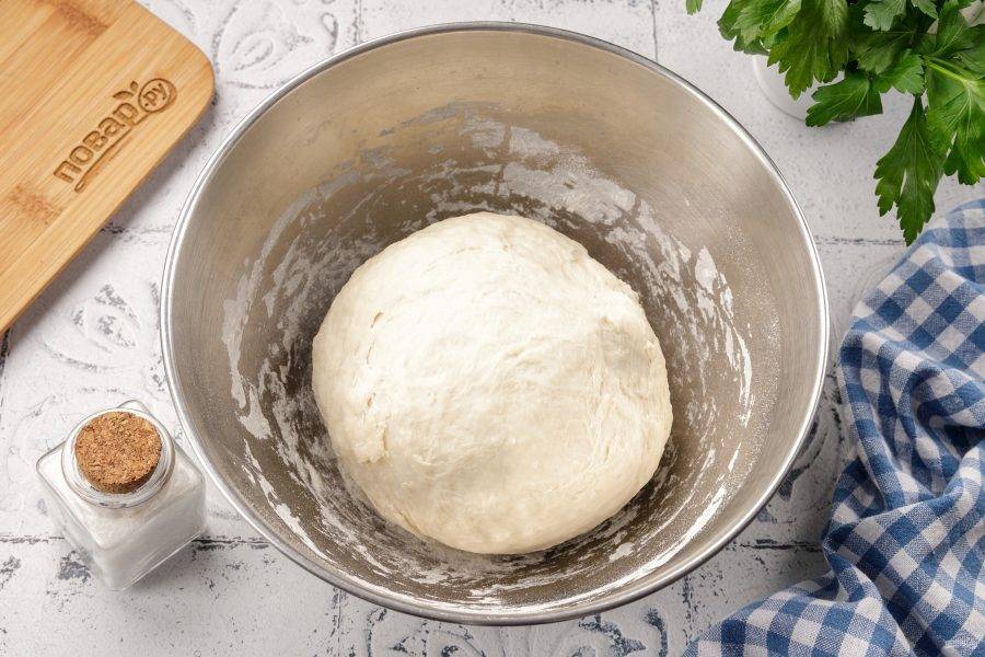Соберите тесто в шар, накройте полотенцем и дайте полежать 20 минут.