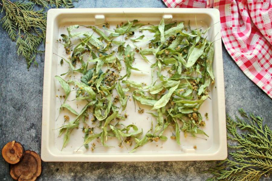 Свежие цветы липы, сорванные с дерева, разложите тонким слоем на подносах или на чистом полотенце. Уберите в темное, хорошо проветриваемое место. Оставьте сохнуть цветы в течение 3-4 дней. Готовые цветы уберите для хранения в сухое и темное место.