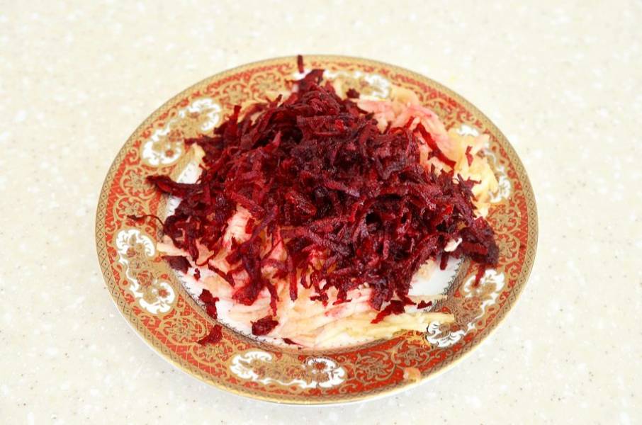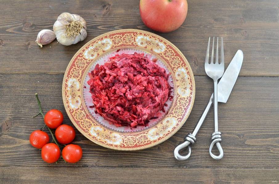 Эта закуска из свеклы с яблоками скрасит холодные зимние вечера. На вкус она получается насыщенной, яркой и немного сладковатой. Просто объедение!