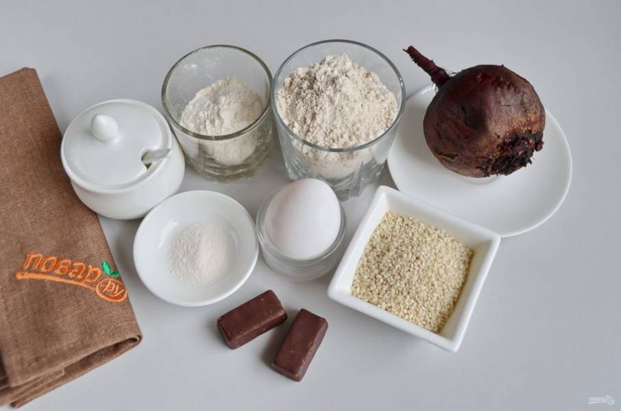 Подготовьте продукты, вареную свеклу очистите от кожуры. Конфеты выбирайте на свой вкус, любые шоколадные подойдут.