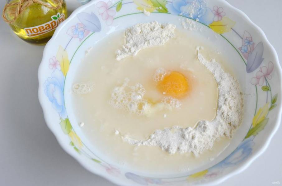 2. Смешайте муку с солью и сахаром, добавьте яйцо.