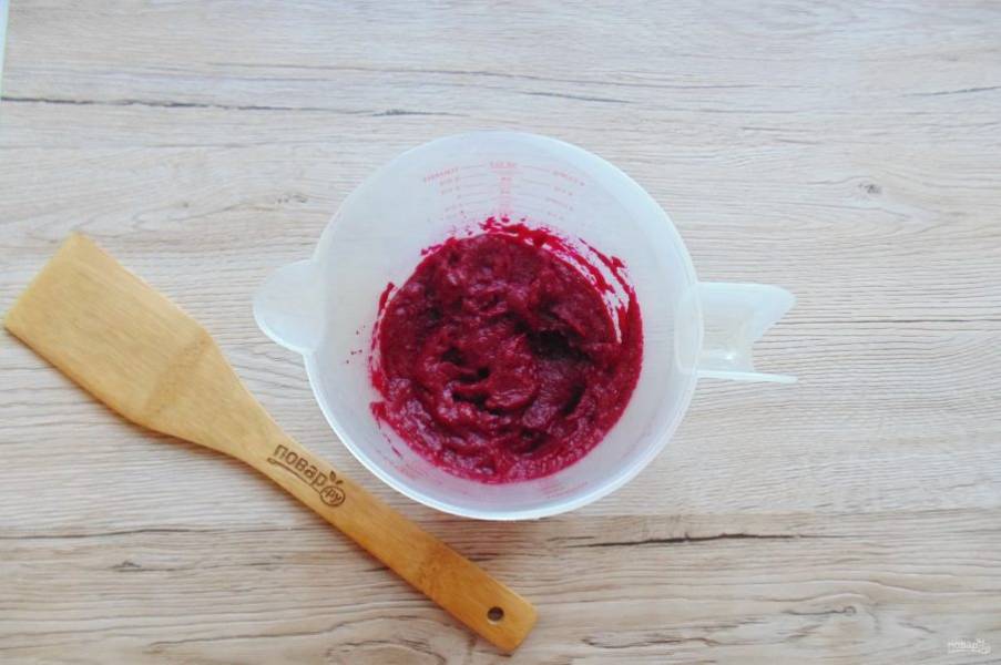 Влейте уксус. Тушите свекольное пюре 15-20 минут на небольшом огне.