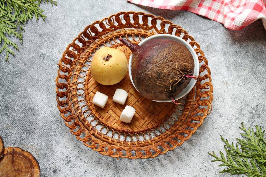 Подготовьте все необходимые ингредиенты для приготовления свекольного уксуса. Яблоки и свеклу тщательно вымойте, обсушите.