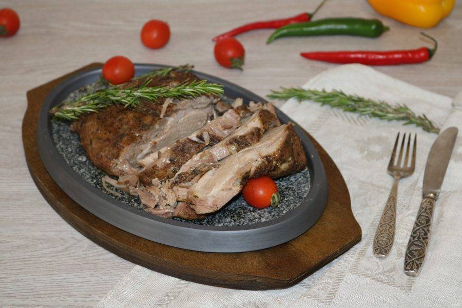Если вы хотите, чтобы мясо распадалось по волокнам, можно увеличить время запекания до 110 минут.