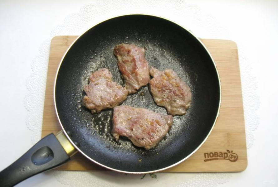 Обжарьте мясо с обеих сторон до легкой золотистой корочки.
