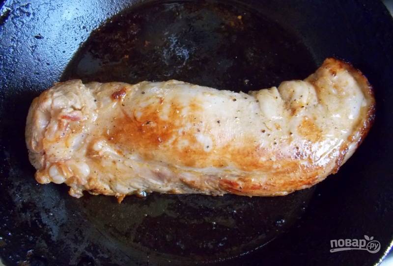 Выньте мясо, обсушите бумажным полотенцем и обжарьте на разогретой и смазанной маслом сковороде со всех сторон до золотистой корочки. Переложите в форму.