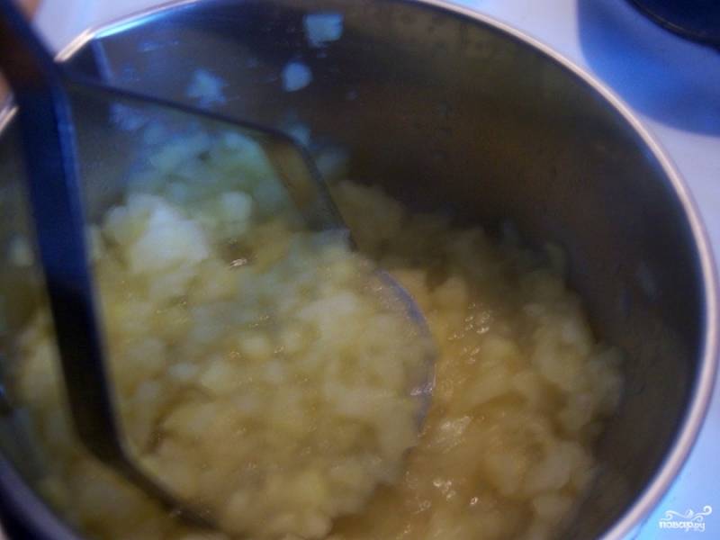 Теперь мы можем заняться приготовлением яблочного соуса. Для этого мелко нарезаем яблоки и выкладываем их в кастрюльку, добавляем мед или сахар, воду, соль и выжимаем сок из четверти лимона. Перемешиваем все ингредиенты, ставим кастрюльку на огонь и тушим все на медленном огне в течение 10-15 минут. Затем измельчаем соус до состояния пюре и ставим его остывать.