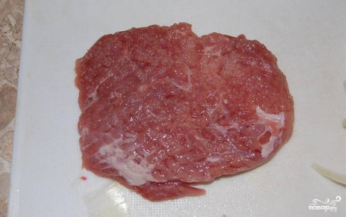 Свинину промываем под холодной водой, высушиваем при помощи бумажной салфетки и немного отбиваем каждый кусочек.