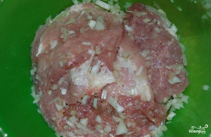 Когда свинина хорошенько промаринуется, ее необходимо немного обжарить на сковороде, буквально по паре минут с каждой стороны.