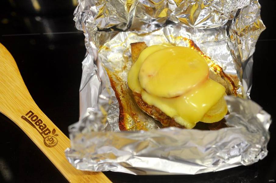 5. Выложите сверху ломтик сыра и верните в духовку на 7 минут.