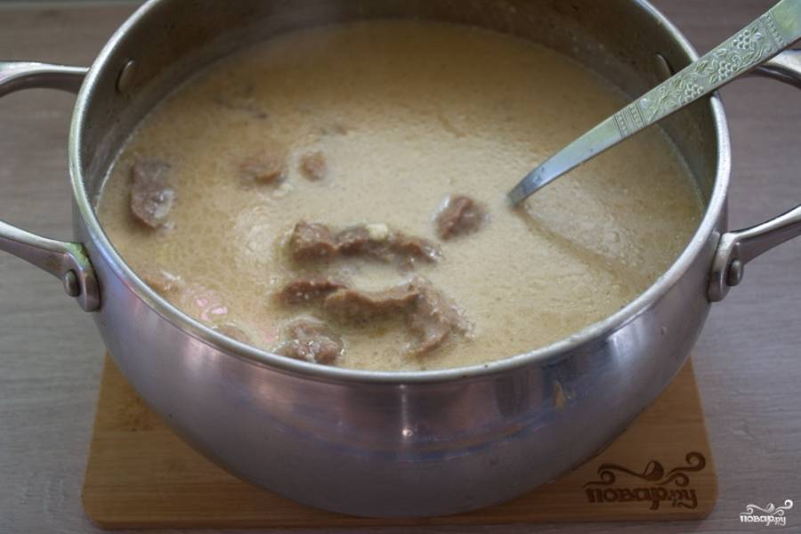 Подайте мясо к столу. Невероятно вкусное мясо в великолепном сырном соусе ждет, чтобы его скорее попробовали. Отличное блюдо. И готовится легко.