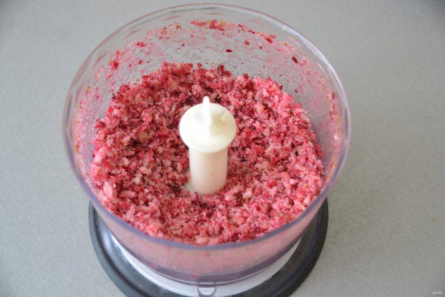 Для приготовления клюквенного маринада сложите клюкву в блендер.