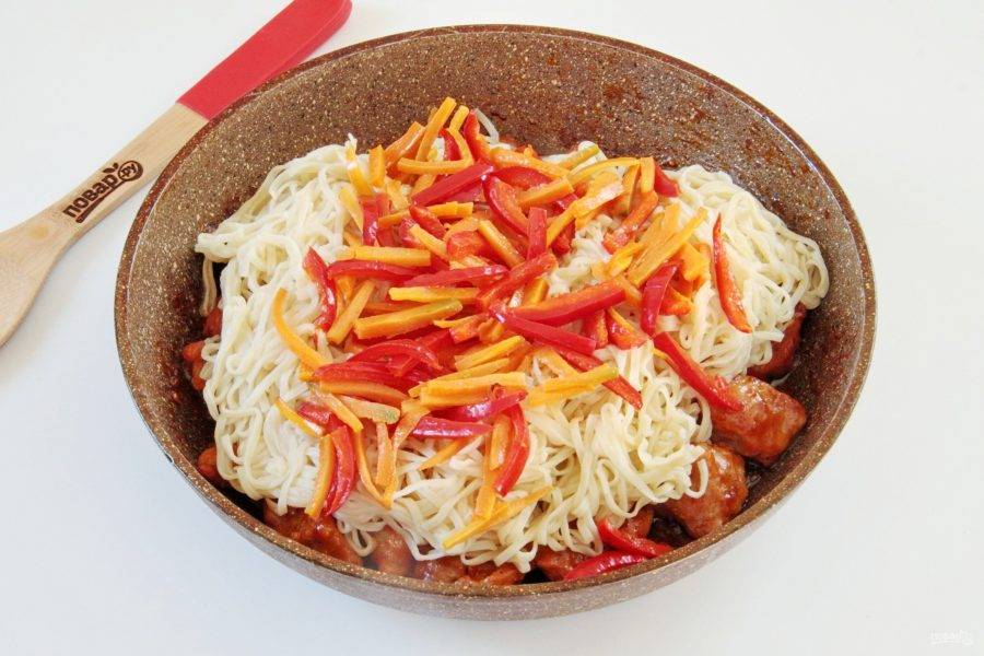 9. Добавьте отваренную лапшу и обжаренные овощи.