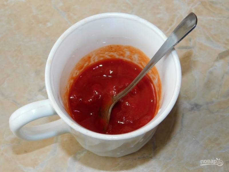 Томатную пасту немного разведите водой и добавьте к мясу.