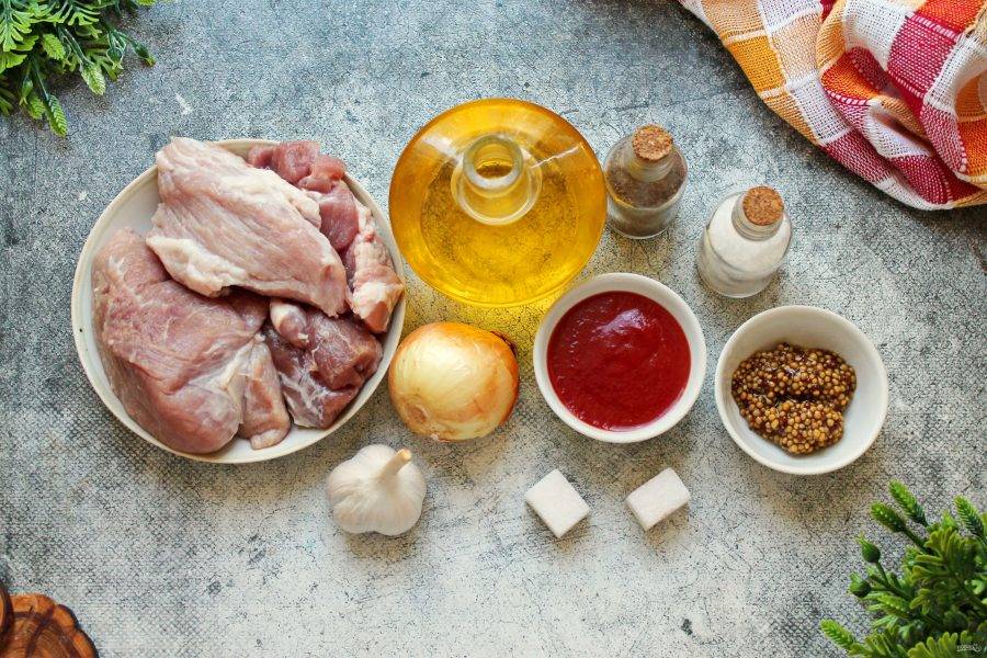 Подготовьте все необходимые ингредиенты для приготовления свинины в микроволновке.