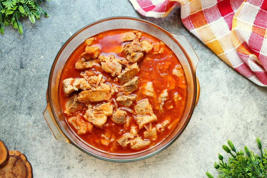 Готовьте свинину в течение 10 минут при мощности 600 Вт.