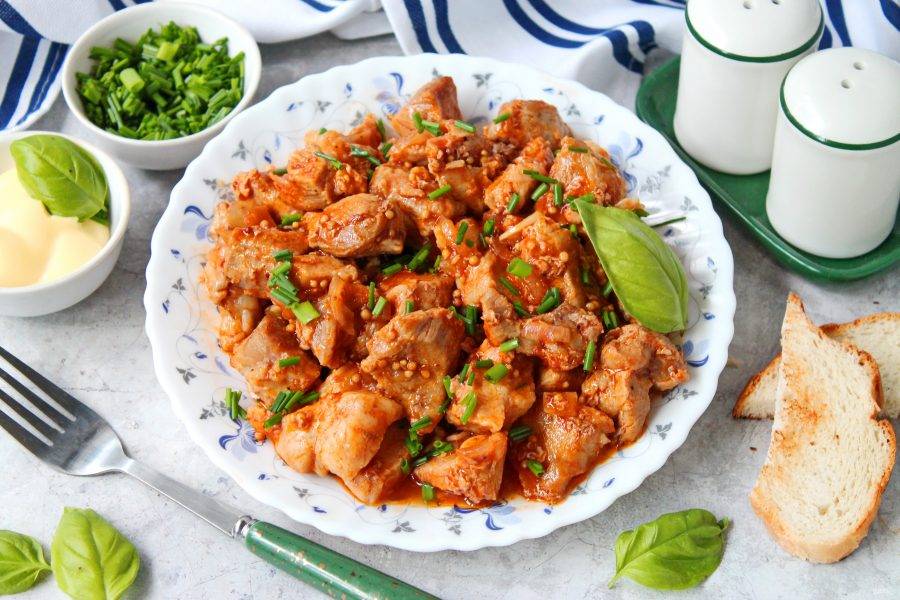 Готовьте свинину при мощности 600 Вт в течение 15 минут, до готовности мяса. Готовую свинину подавайте сразу на стол с любым гарниром.